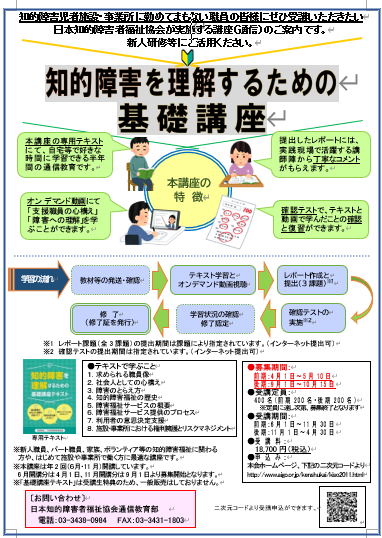 第22回知的障害を理解するための基礎講座(受講生募集中)